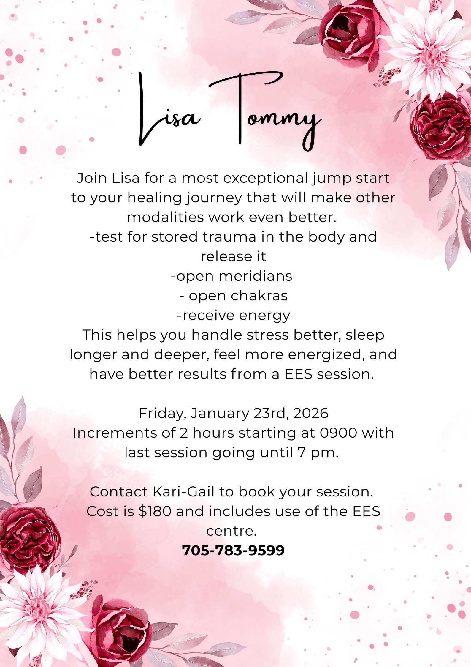 $900 for a package of 30 hours--receive a free mini reflexology session ❤️